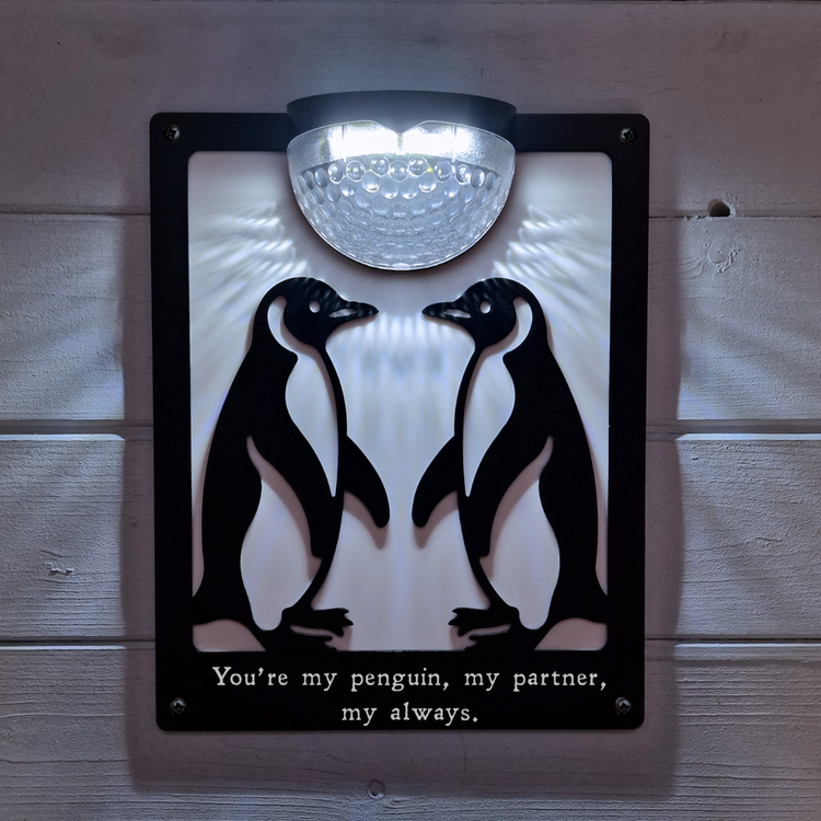 'You’re My Penguin, My Partner, My Always' Penguin Partners Solar Light Wall Plaque