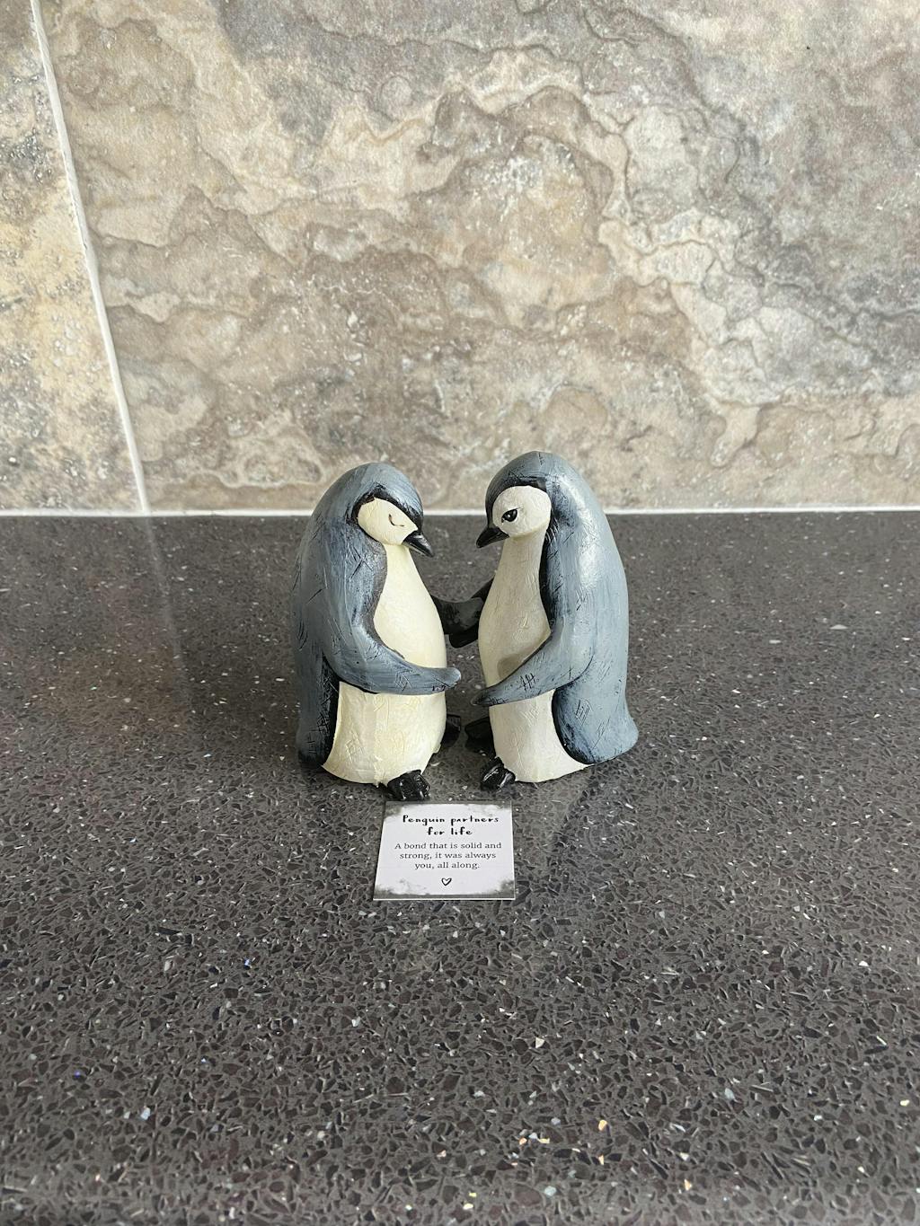 The ornament is called 'Penguin Partners for Life' and comes with a sentiment printed on the packaging which reads 'A bond that is solid and strong, it was always you, all along'.