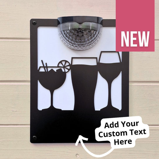 Add a dash of fun to your garden with this Solar Bar Sign that includes cocktails and other beverages PLUS the popular phrase ‘It’s 5 o’clock somew...