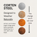 Once placed in the garden, rain and air slowly create that rich, warm rusted finish Corten steel is known for