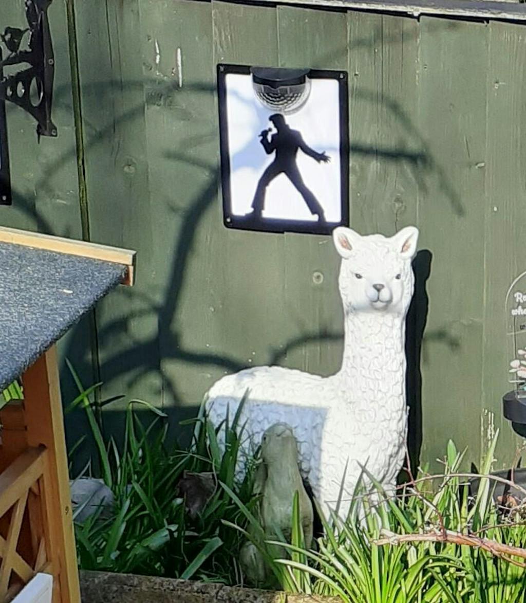⭐️ Bring a true music icon into the garden with this Elvis Solar Plaque. Featuring a striking silhouette inspired by Elvis Presley, this solar-powered plaque adds character by day and a warm glow by night 🕺🏻