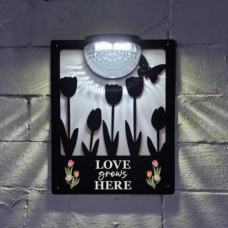 'Love Grows Here' Tulips Solar Light Wall Plaque