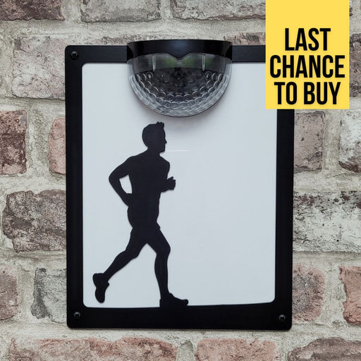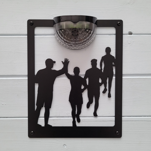 Celebrate your passion for running with our bespoke solar light featuring a group of runners, including one giving a high-five. This charming desig...