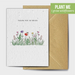 Made from seed card, a post-consumer paper waste and 100% biodegradable seed-embedded card and printed with vegan-friendly inks.