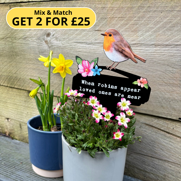 Bring warmth to your garden with our charming Robin pot stake. A sweet reminder that robins appear when loved ones are near.