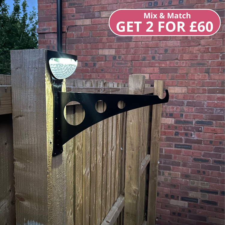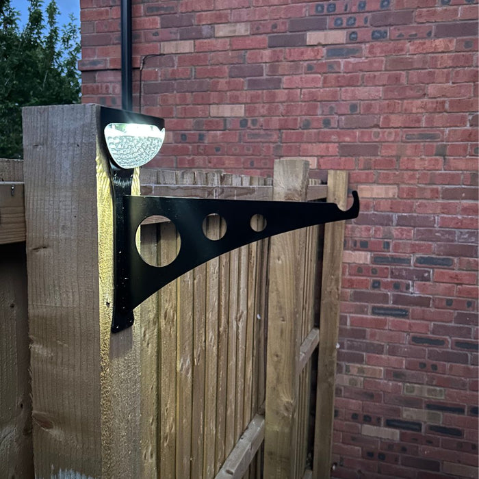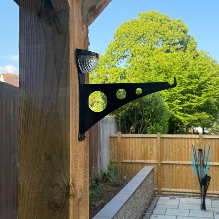Enhance your garden with this elegantly simple hanging bracket, designed around a timeless circular motif. The bracket also includes a powerful solar-powered LED light - a perfect addition to light up the garden ✨
