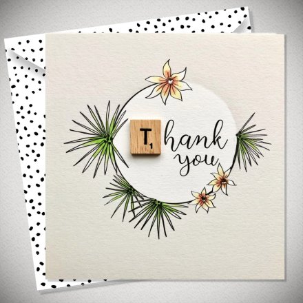A beautiful greetings card perfect to say thank you to your loved one on any occasion- complete with a decorative scrabble piece and a spotted envelope.